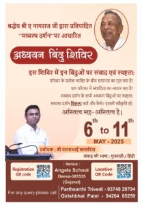जीवन विद्या अध्ययन बिंदु शिविर, गुजराती/हिंदी, एंजल्स स्कूल, महालक्ष्मी पार्क, पाटन हाईवे, 6 से 11 मई,2025|