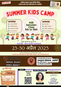 दिनांक: 23 से 30 अप्रैल 2025 किड्स समर कैंप (कक्ष 5th से कक्षा 10th तक )