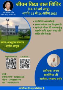 जीवन विद्या बाल शिविर(14-18वर्ष आयु) अभ्युदय संस्थान धनौरा, हापुड़, 11 से 14 अप्रैल, 2025|