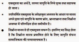 Universality becomes successful only from (evidences in living of) human beings in illusionless status. Hence it is established that awakened social order is absolutely necessary so that humankind (as a whole) could become evidence of illusionless status.